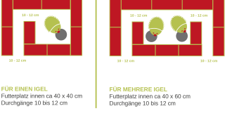 Ein Futterhaus sperrt Katzen, Krähen und Waschbären aus. Es entspricht im weitesten Sinne einem Igelschlafhaus mit Labyrintheingang, am besten ohne Boden, aber mit sicherem Deckel. Man kann es auch schnell aus Ziegelsteinen und einer Platte selbst aufbauen.