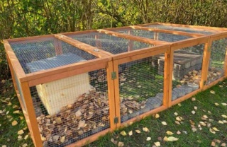 In das Gehege stellen Sie ein Schlafhaus (mindestens 30x40), gefüllt mit Stroh. Bitte verwenden Sie kein Heu, da dies schnell schimmelt und sich die feinen Halme um die Beine wickeln können.