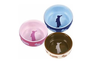 Futter- und Wassernäpfe aus Keramik, da Plastik gern umgeworfen wird.